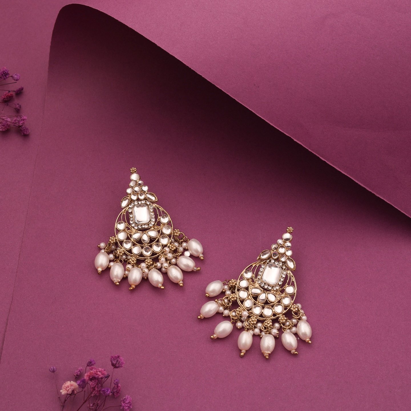 Be the first to review “Gold Plated Kundan Stone Studded White Pearl Attach Earring for Women & Girls”